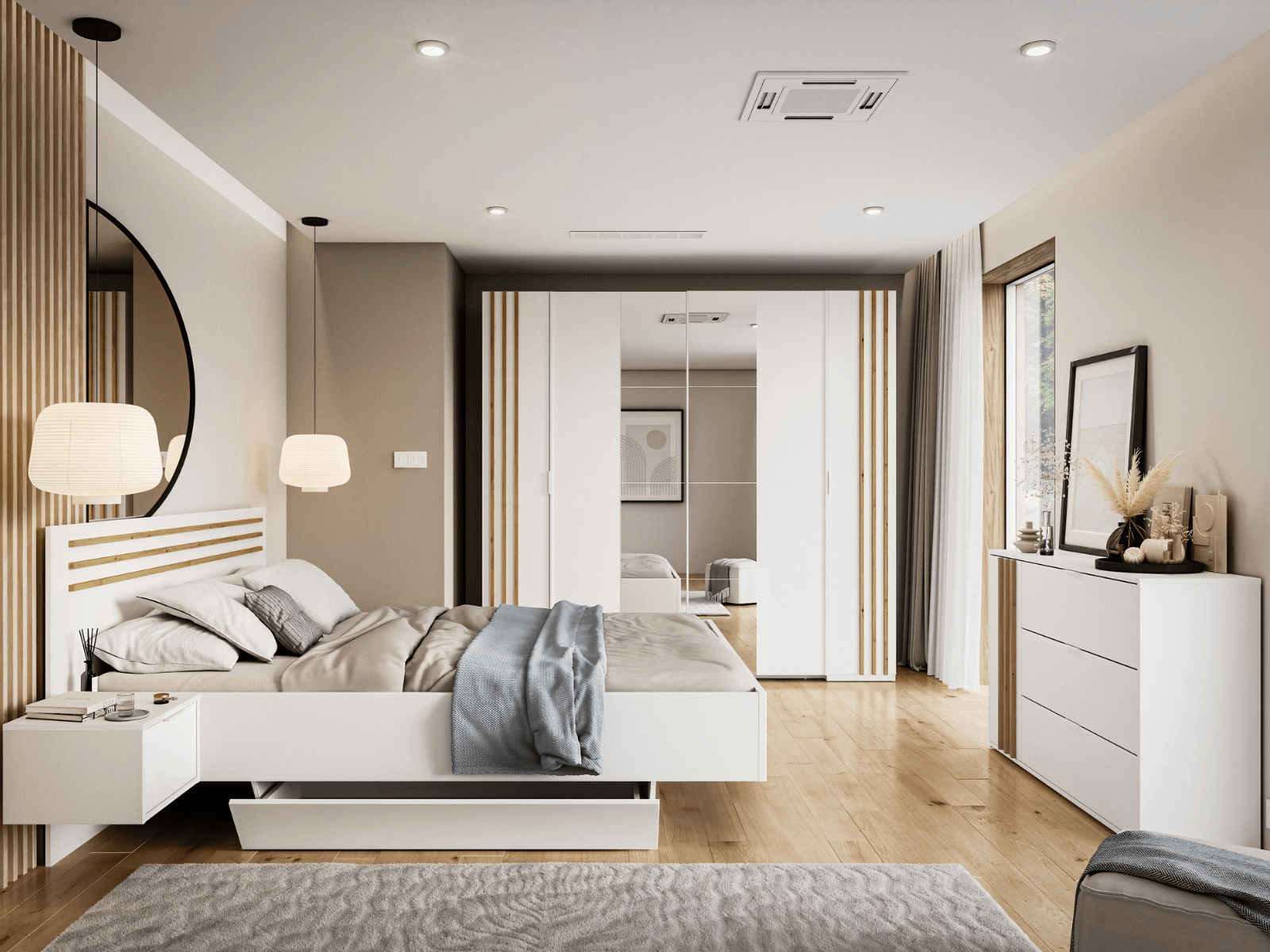 Vous recherchez une armoire à portes coulissantes et battantes ? L'armoire FLORACE est faite pour vous ! Elle s'intègre parfaitement à tout type d'intérieur. Son coloris blanc, rehaussé d'une touche de chêne artisan, apportera une note moderne, chaleureuse et naturelle. Cette armoire offre de multiples étagères et deux tringles à vêtements, offrant ainsi un espace de rangement pratique pour vos vêtements et autres objets. Sa taille idéale vous permettra d'organiser et de maintenir l'ordre dans votre chambre. Profitez également des miroirs intégrés pour vérifier votre tenue avant de sortir !