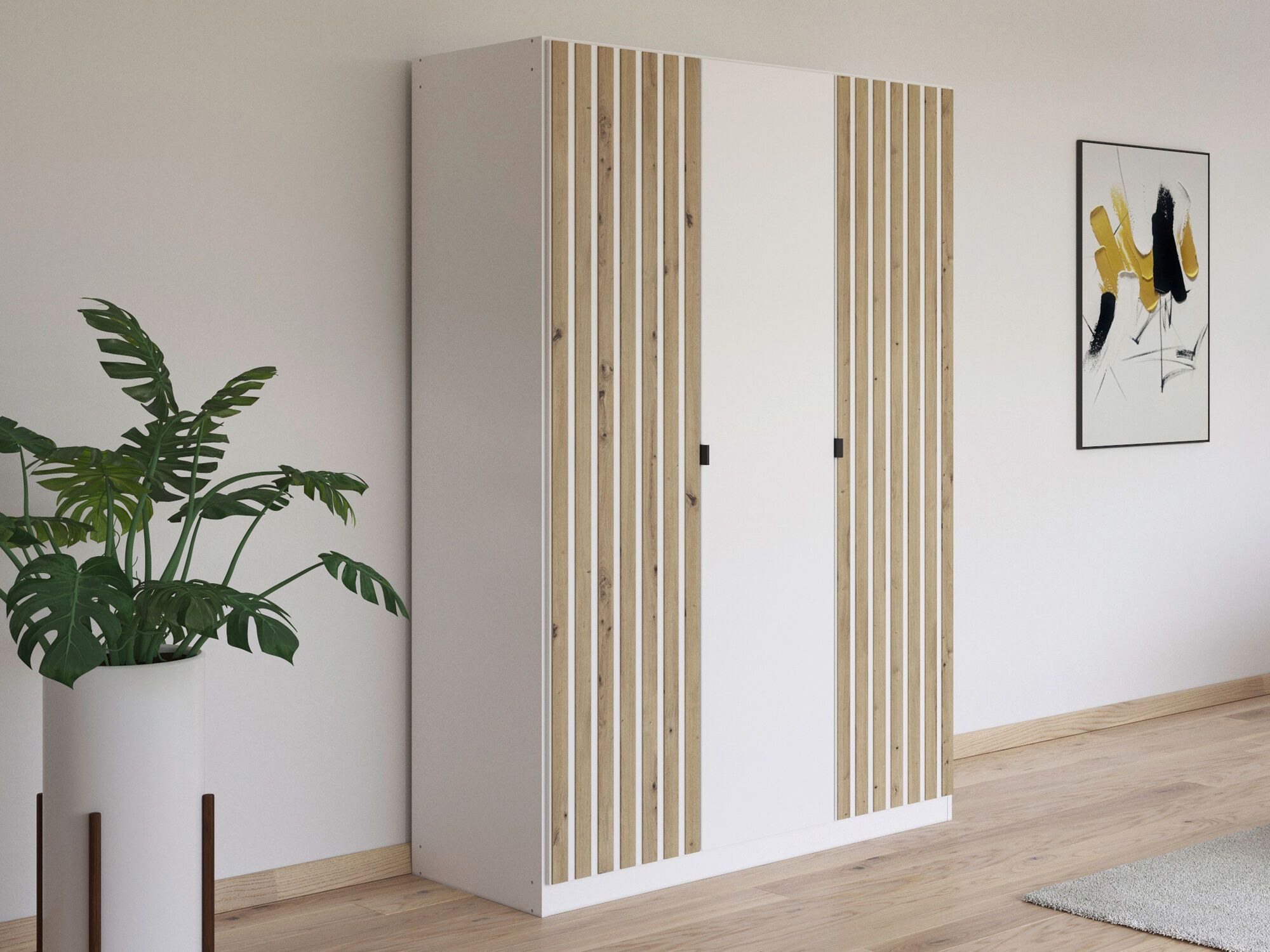 Besoin de rangement supplémentaire pour vos habits ? Alors vous êtes au bon endroit! L'armoire GENUMO vous offrira un grand espace de stockage grâce à ses deux étagères et ses deux barres penderies derrière les trois portes. Le miroir permet de vérifier sa tenue avant de partir promener! De fabrication allemande, l'armoire vous accompagnera aisément dans le temps grâce à des panneaux de particules de qualité!