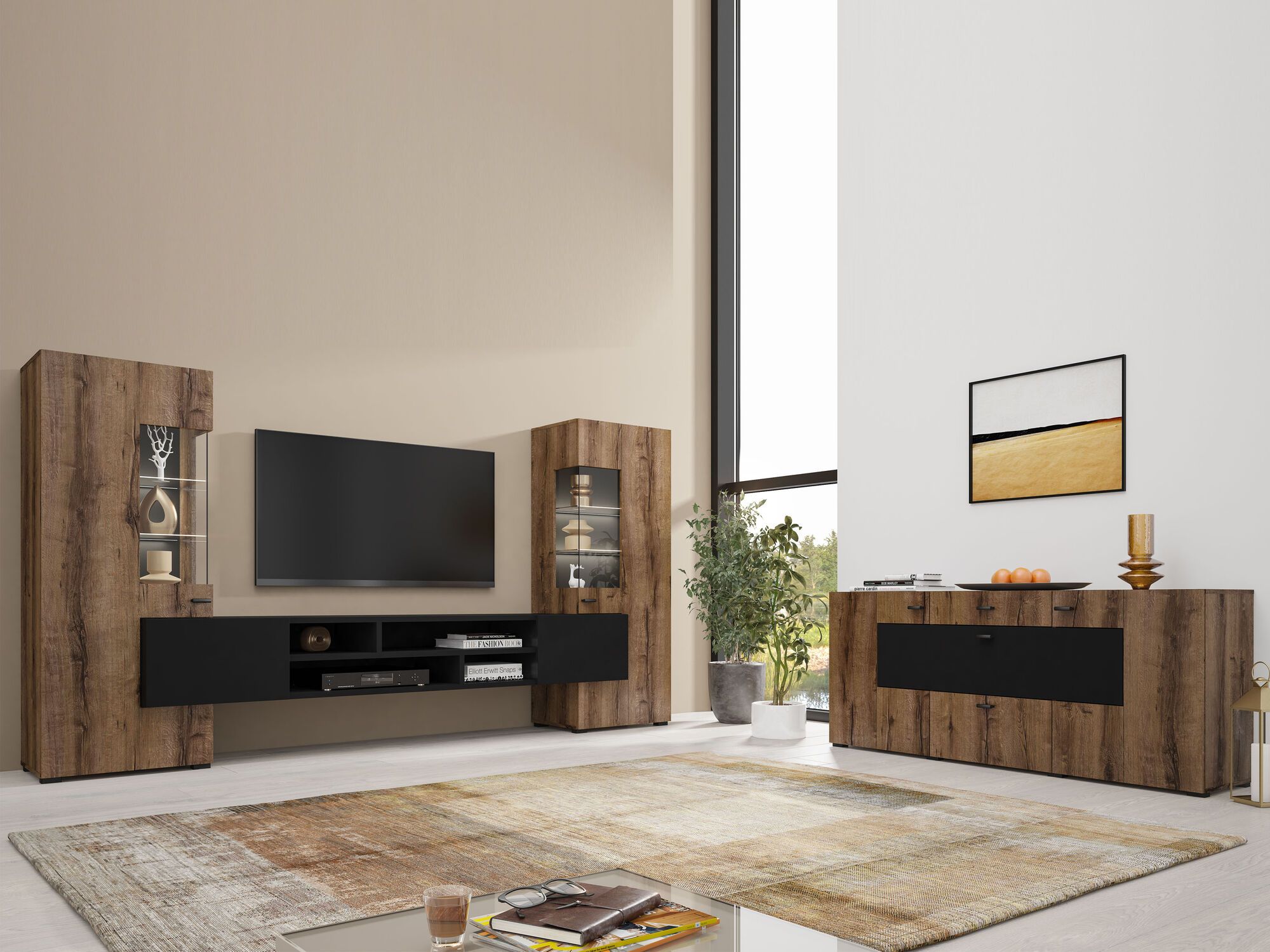 Mur tv-hifi KODI 4 portes chêne wotan/noir